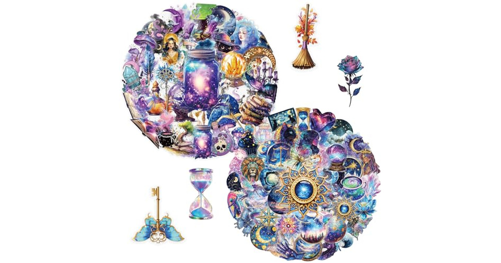 100PCS Starry Magic Transparent Stickers – Waterproof PET Aesthetic Decals with Cats, Moons, O