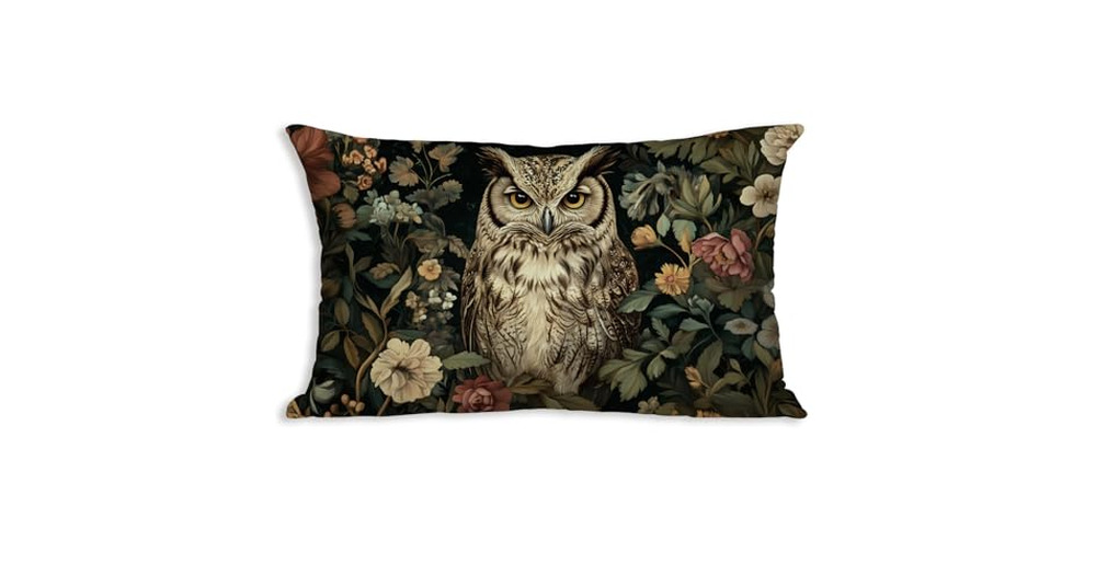 DWSHX William Morris Inspired Design Floral Pillow Covers, Vintage Floral Owl Print Throw Pillow Cov