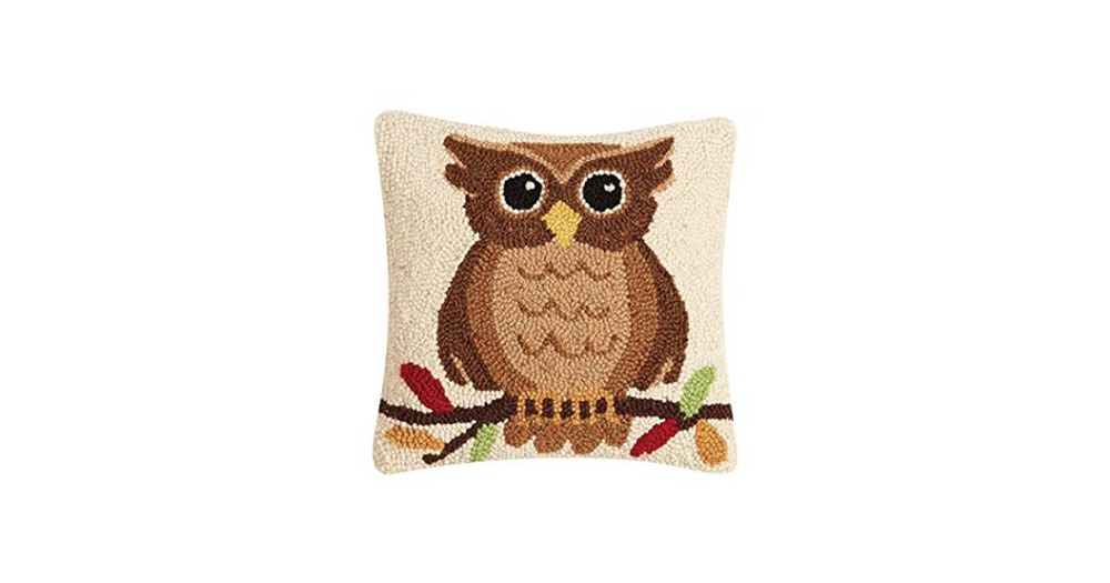 Peking Handicraft 31TG875C10SQ Fall Owl Hook Pillow, 10-inch Length