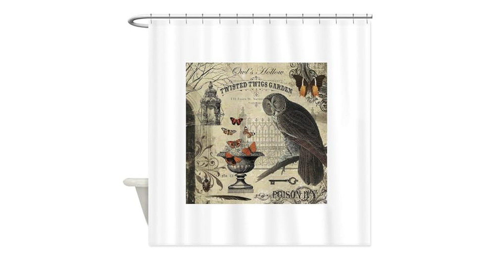 CafePress Modern Vintage Halloween Owl Decorative Fabric Shower Curtain
