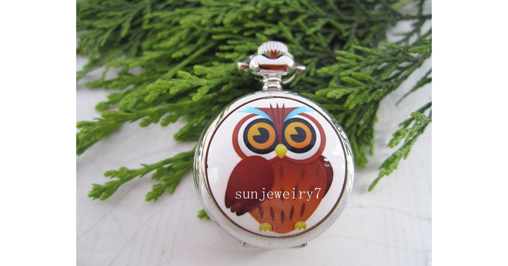 1pcs Owl series Round pocket watch charms pendant PW006 25mmx25mm