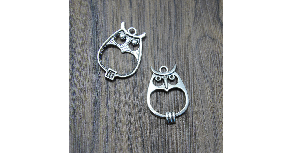 15 Silver Tone Owl Charms: Zinc Alloy Pendants (24x34mm)