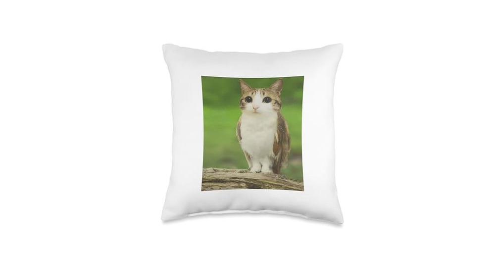 Meowl Cat Owl Funny Cursed Internet Trendy Meme Throw Pillow
