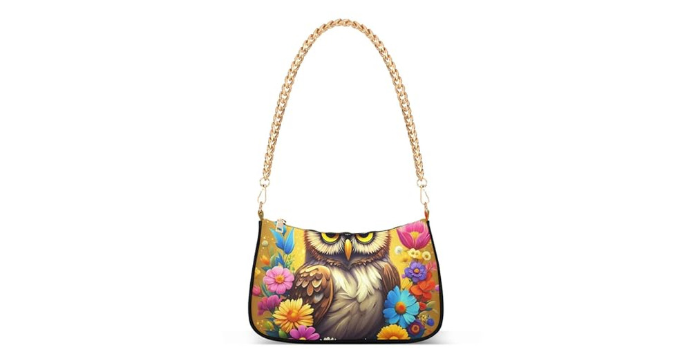 Owl Yellow Floral One Shoulder Purses for Women Crossbody Purse Chain Strap Zipper Medium Cute Purse