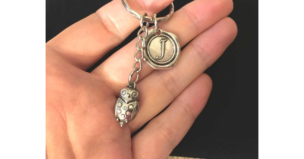 Owl keychain with letter owl jewelry initial keychain with letter owl gifts for women owl key chain
