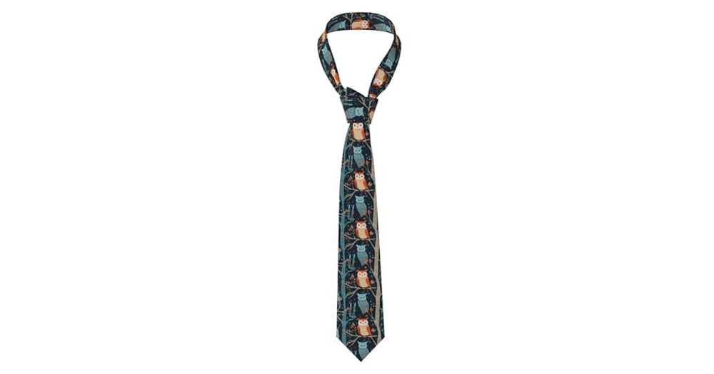 HJFCZH Couple Owl Perch Tree Printing New men's tie with silk print, durable for both daily and