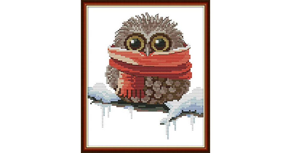 Awesocrafts Cross Stitch Kits, Owl Scarf Cute Christmas Winter Easy Patterns Cross Stitching Embroid