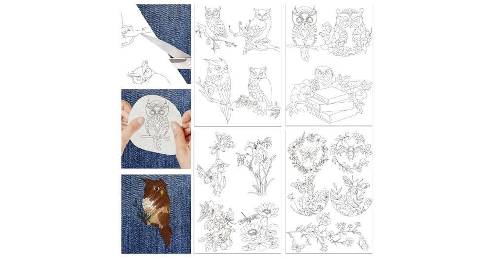 Hobbspring 4 Sheets Water Soluble Embroidery Stabilizers 11.69x8.27 Inches Owl and Flower Stick and
