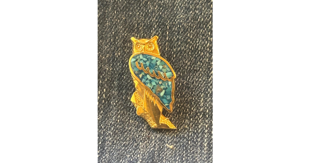 Gold Owl with Turquoise Inlay Lapel / Hat Pin