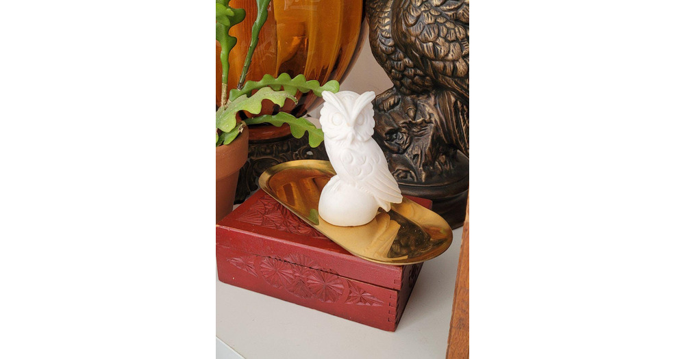 Vintage Carved Owl Figurine White Italian Alabaster 1970s