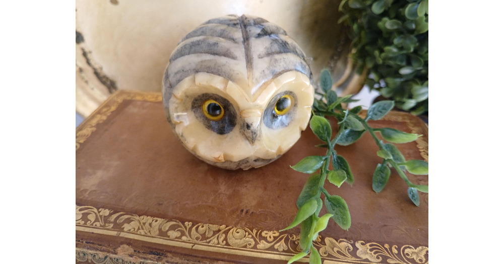 VTG Alabaster Owl Paperweight - Hand Carved Alabaster Owl Figure - Italian Alabaster Owl Sculpture -