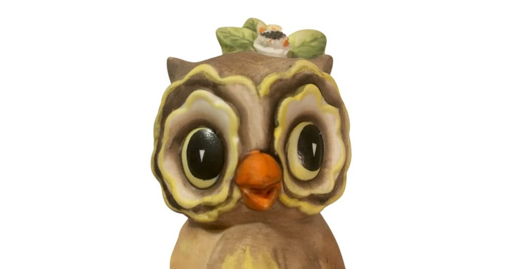 Owl Figurine Vintage Ceramic “I Give A Hoot For You” Kitsch Decor 1970s