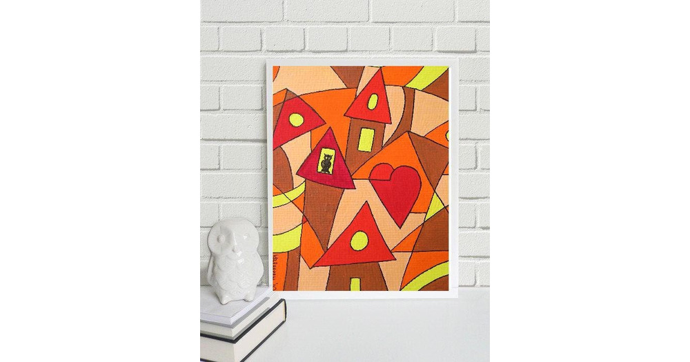 Small Owl Gouache Painting: Abstract Cityscape Art (4.1"x5.8")