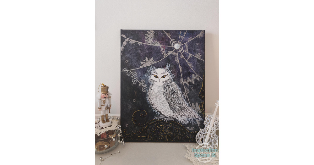 Lace Owl Acrylic Painting: Whimsical Night Bird Art