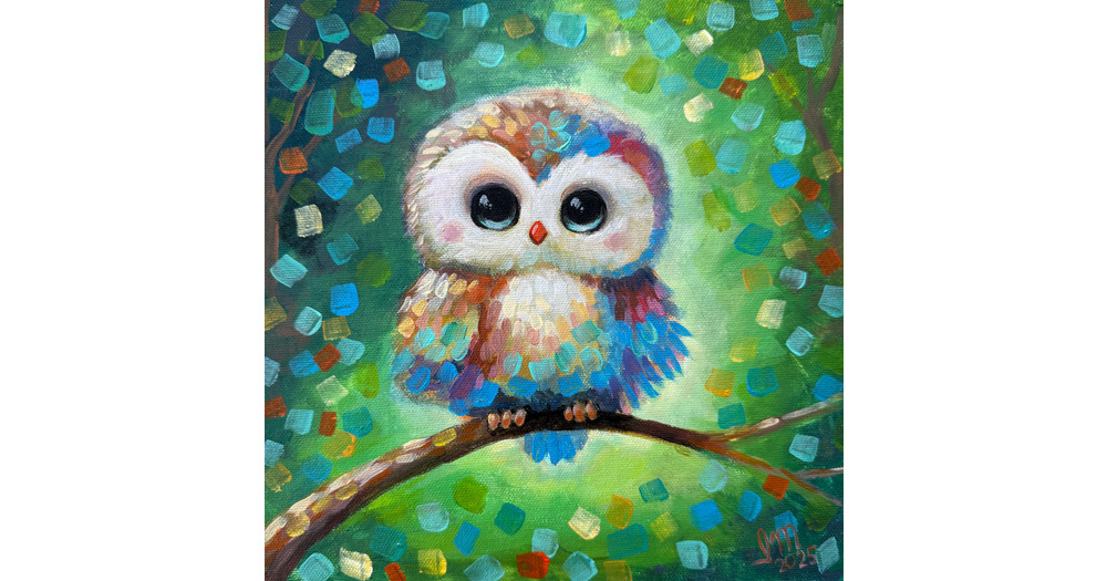 Hand Painted Baby Owl Canvas Painting: Framed Nursery Decor