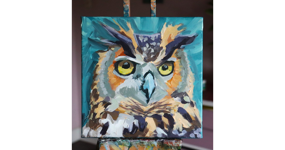 Colorful Owl Painting: Original Acrylic Art on Canvas (8x10 Inch)