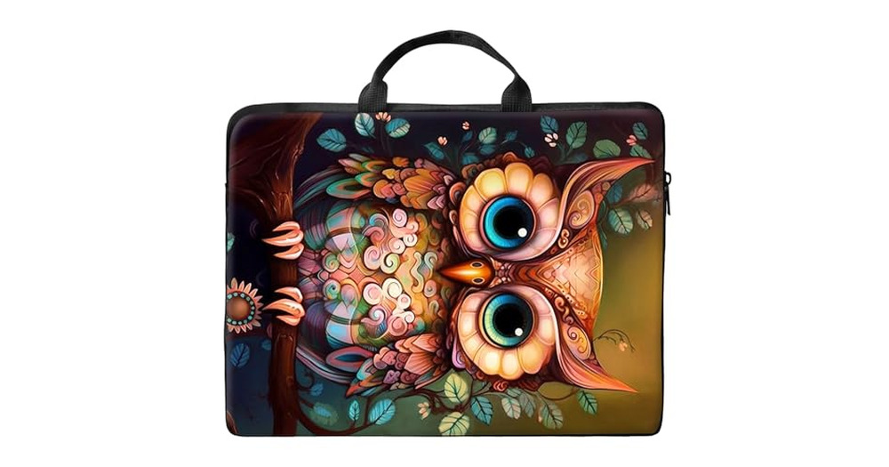 17 inch Laptop Bag for Women & Men - Owl in the Tree Pattern Computer Bag with Handle & Zipp