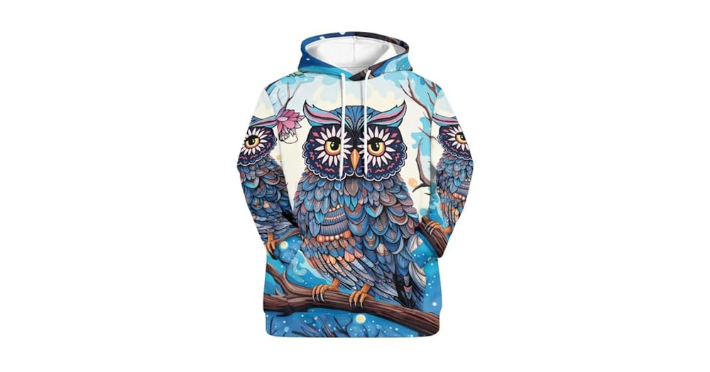 Cumagical Art Owl Print Women Oversized Hoodie Long Sleeve Pullover Casual Fashion Sweatshirt Teen G