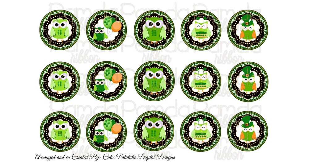 St Patrick's Day Owl Images, Bottle Cap Printable (Digital Download)
