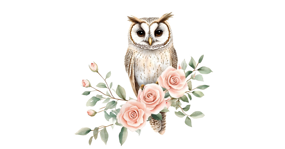 Owl and Roses Clipart: Valentine Watercolor Birds (16 Digital Images)