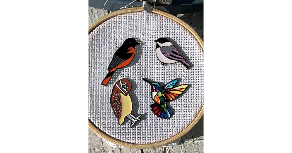 Birding Enthusiast Enamel Needle Minder: Owl Oriole Chickadee Hummingbird