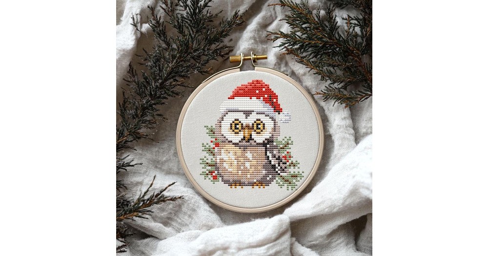 Mini christmas owl cross stitch pattern PDF - owl ornament simple small winter bird forest cute easy