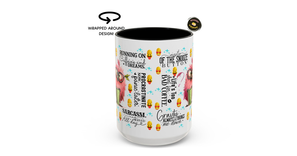 Funny Grumpy Owl Mug, Running on Caffeine and Dreams Coffee Cup