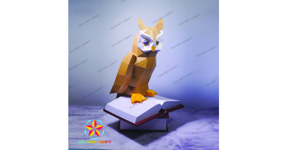 PaperCraft Owl on Books PDF, SVG Template for Cricut Project - DIY Owl on Books Paper Craft, Origami