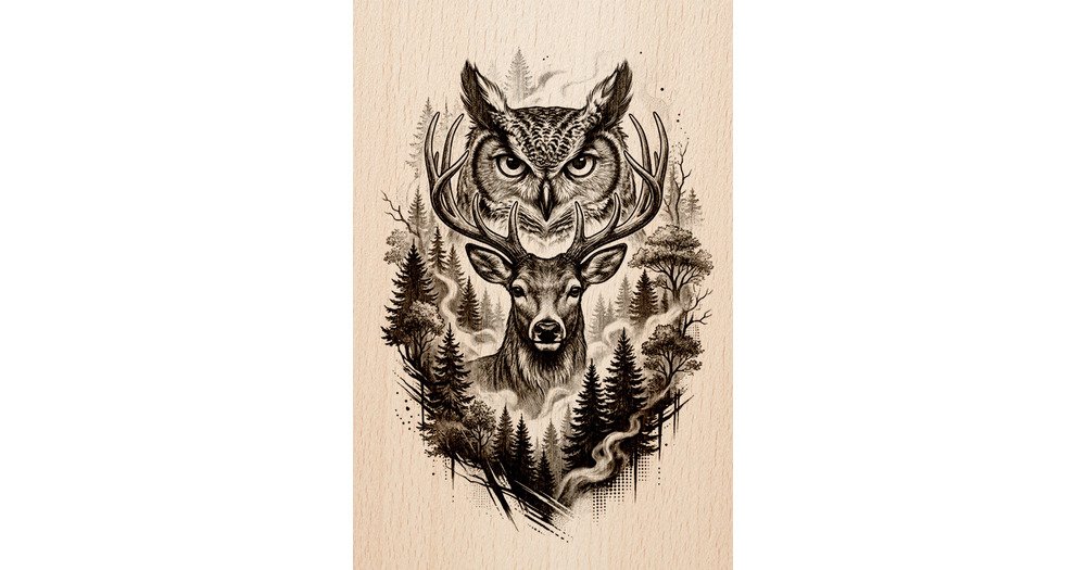 Owl & Stag Forest Art | Wildlife Wall Decor | Laser Engraving File | Wood Burn PNG