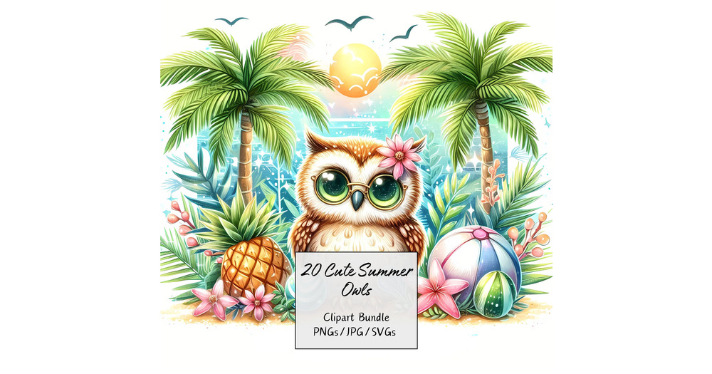 Cute Summer Owls Clipart Bundle, Watercolor Owl Clip Art Images, High Quality Animals Files, Funny D