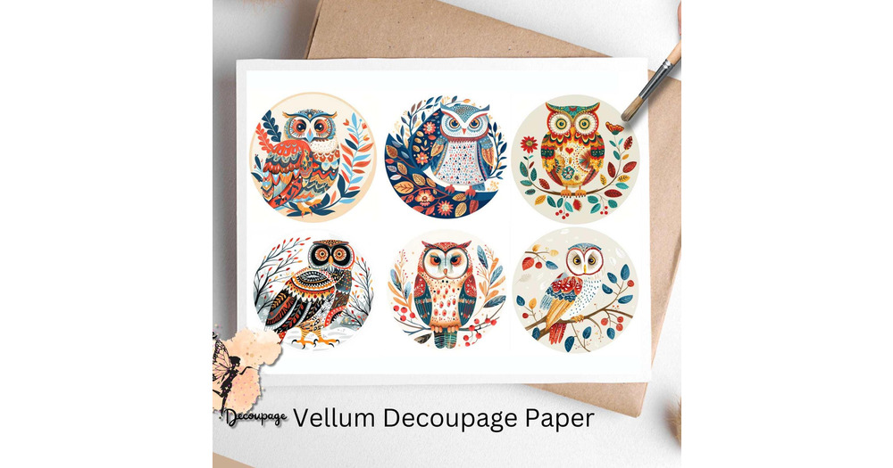 Scandinavian Owl Circle  2 , One Sheet Decoupage Paper US Letter Size