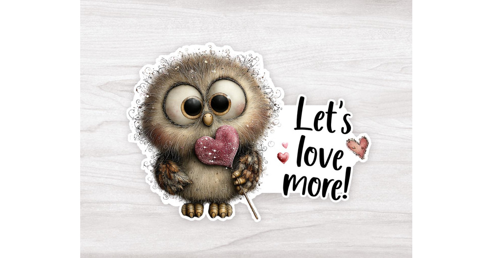 Cute Owl with Heart Vinyl Durable Sticker: Valentine Gift, Anniversary, Friendship, Owl Lover