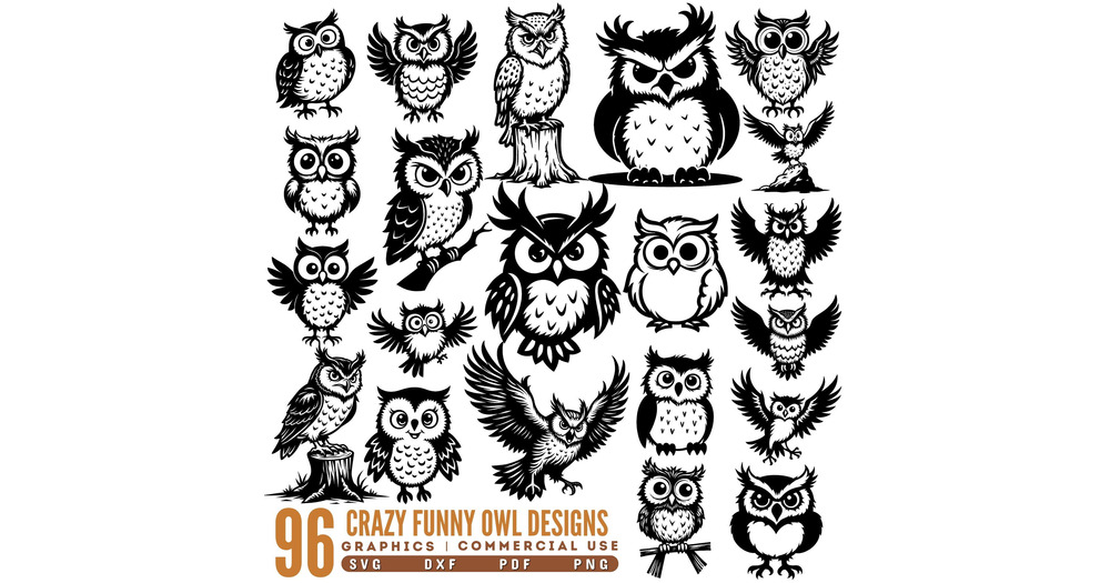 Crazy Funny Owl Designs Svg Png Pdf & Dxf Bundle for Cricut and Silhouette Owl Craft Projects in