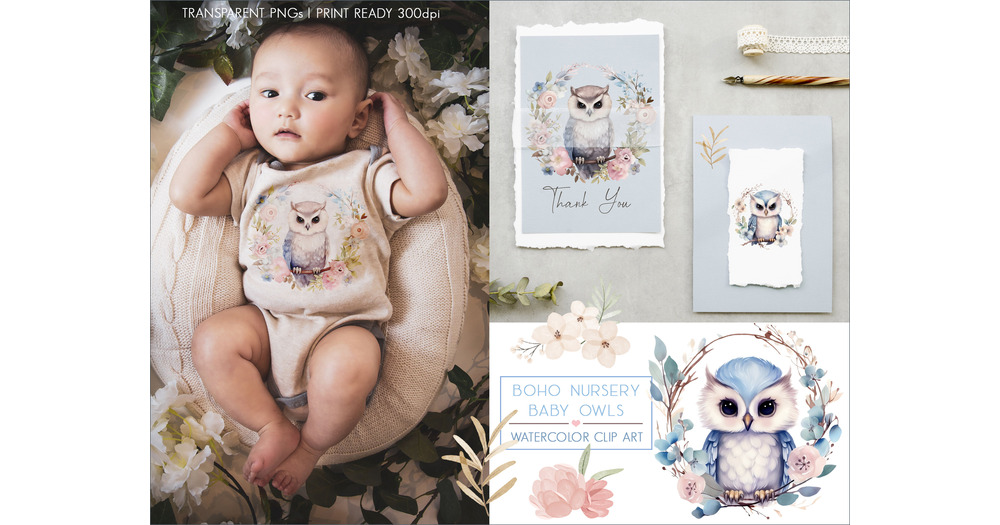 Boho Baby Owls Nursery Art Woodland Animals Decor Owl Art Prints Baby Shower Invitations Blue Flower