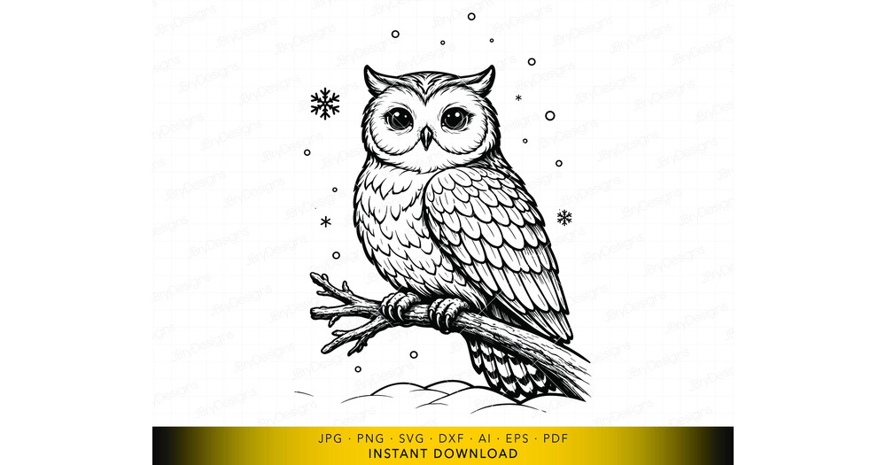 Owl SVG, Perched Owl on Branch Design, Wildlife Art, Winter Nature Decor Printable, Vector File fo C