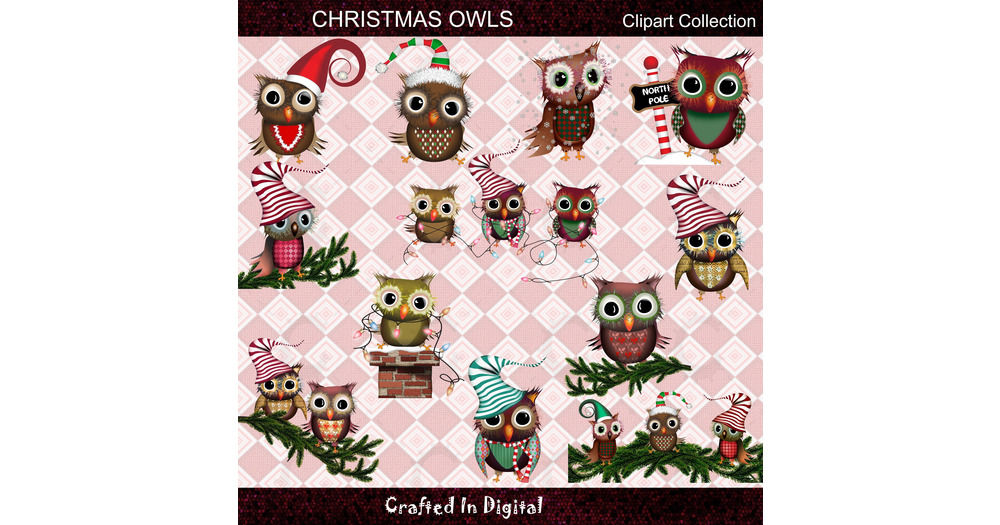 Christmas Owls Clipart: Vintage Holiday Graphics (Digital Download)