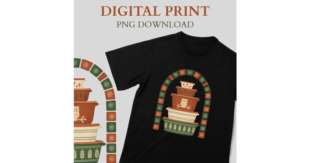 Retro Owl Nesting Bowls PNG, Boho Kitchen Print (Digital Download)