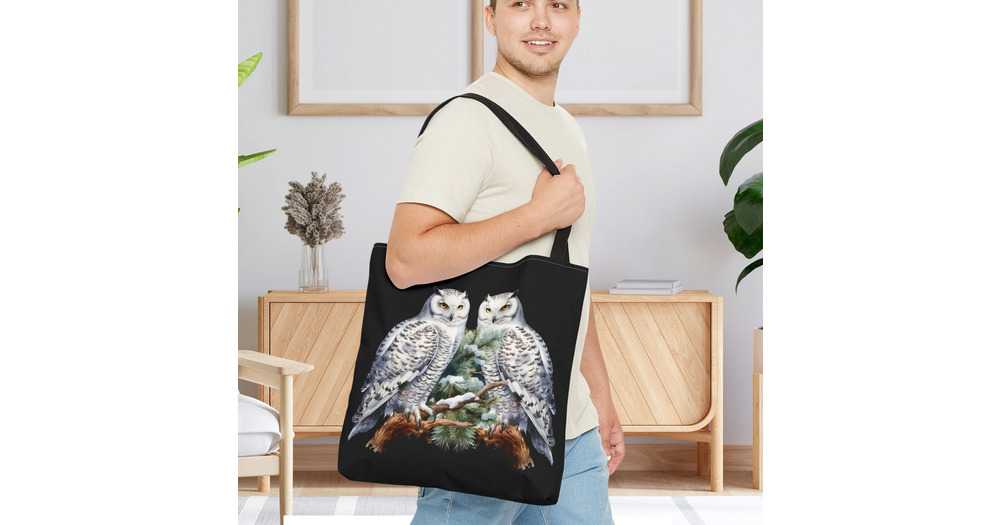Owl Tote Bag, White Winter Owl Bird Travel Bag, Nature Lover Gift Bag, Wildlife Forest Animal Birdwa