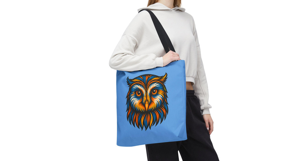 Colorful Owl Illustration Tote Bag | Blue All-Over Print