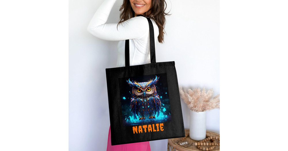 Vibrant Owl Art Tote Bag, Personalized Gift
