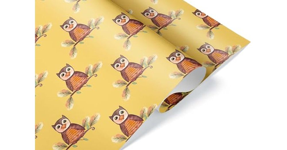 Yellow Watercolor Owl Wrapping Paper Premium Gift Wrap Party Decoration Decor (6 foot x 30 inch roll