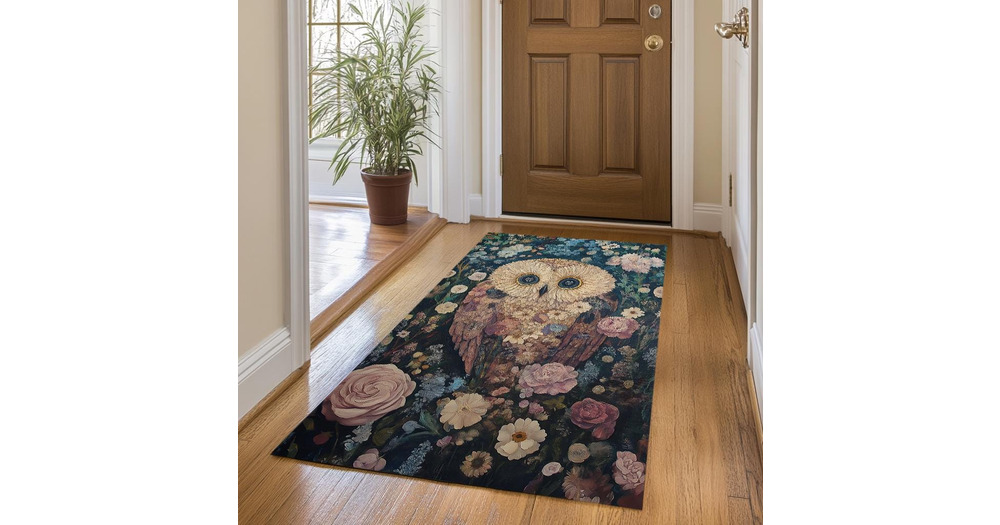 Owl print rug, Botanical rug, Gothic rug, Vanity rug, Floor covering rug, Rug for indoor, Under tabl