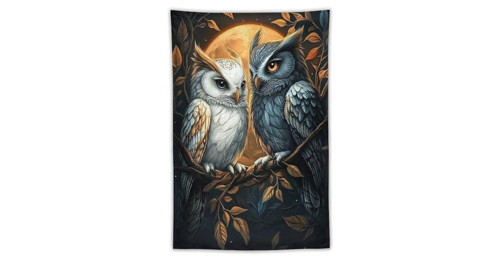 DuduYH Two Owls in The Moonlight Tapestry Polyester Wall Hanging Modern Aesthetic Tapestry for Home