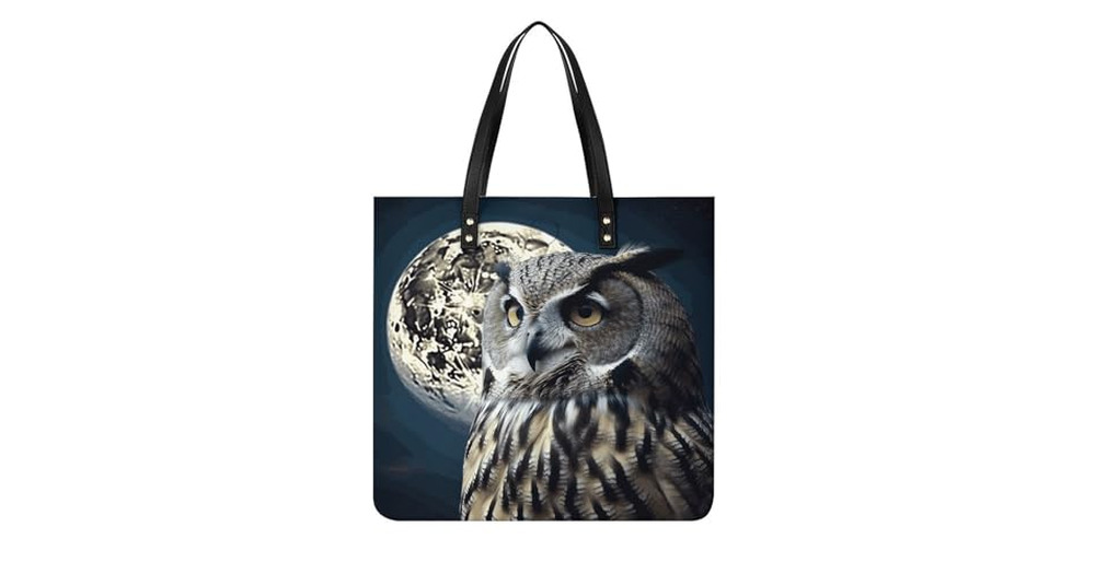 Owl And Moon Leather Handbags Crossbody Bags for Women Trendy Vegan Purses Shoulder Handbags with Wi