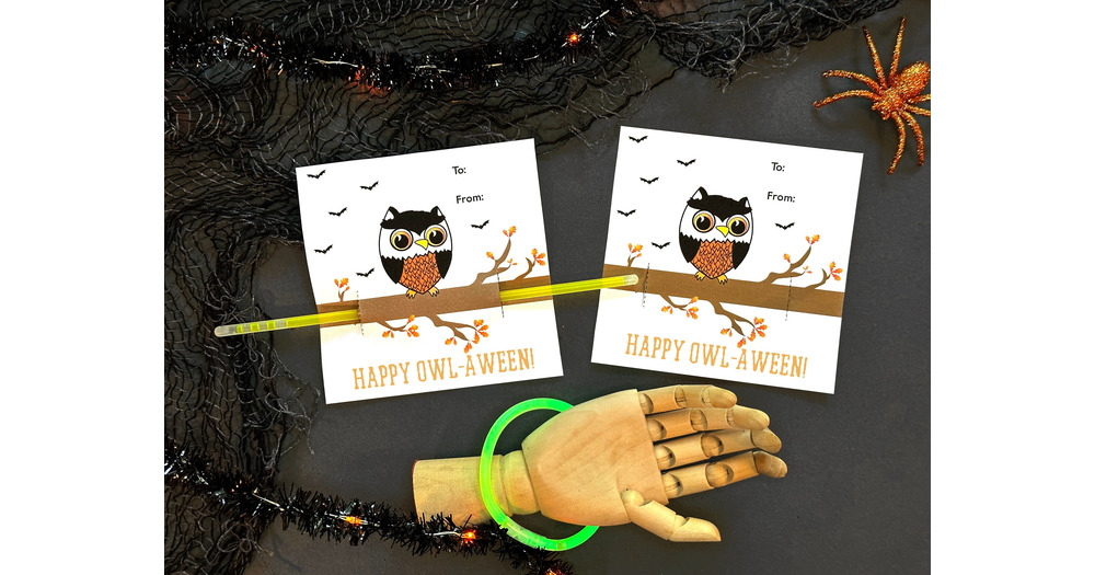 Owl Glow Bracelet or Pencil Holder - Owl Halloween Party Favor - Printable Card - Instant Download -