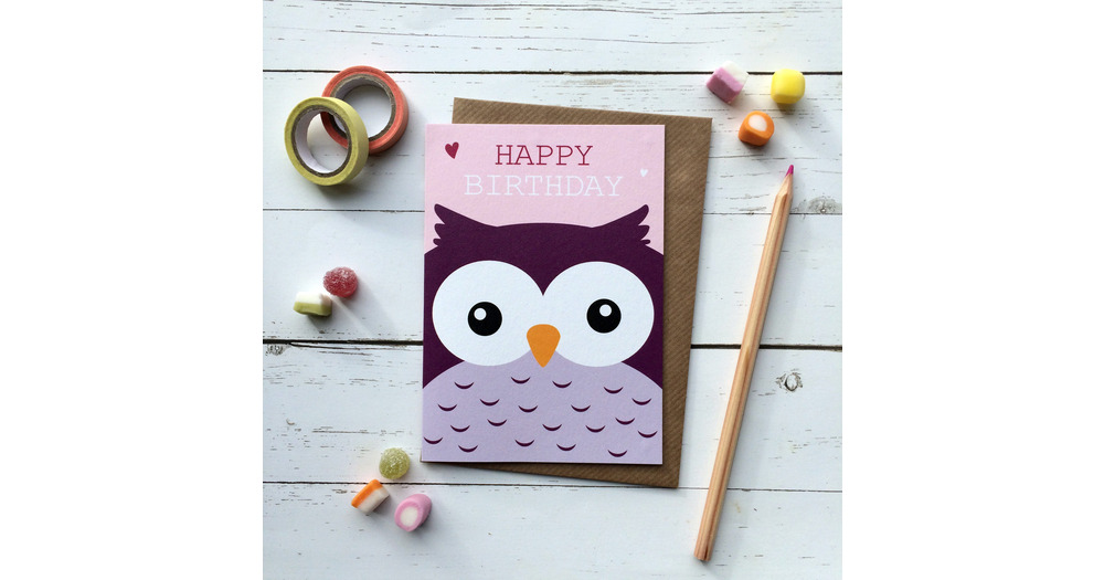 Cute Owl Birthday Card | Kawaii Owl birthday card for kids