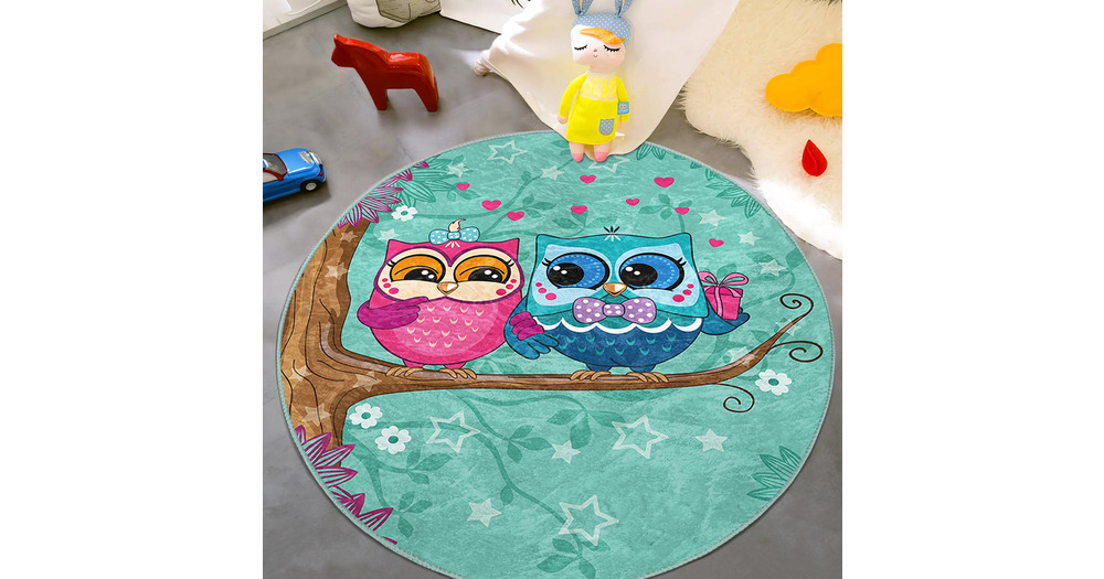 Owl Round Nursery Area Rug - Green Gift Circle Newborn Carpet - Hearts Baby Crawling Rug - Lovely Ca