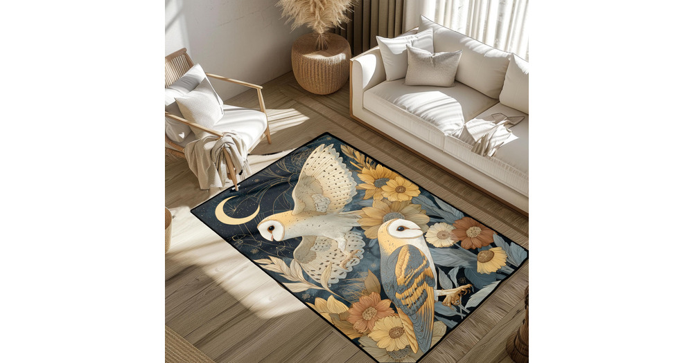 Barn Owl Lover Gift Rug, Bird Watcher Hobby Area Rug, Celestial Moon Decor Floor Mat, Nature Lover H