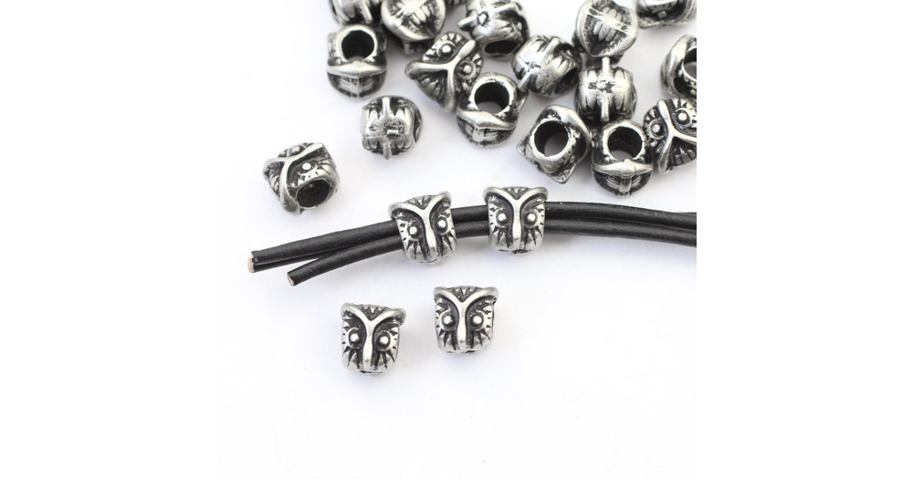 10 Antique Silver Owl Beads: Large Hole Pewter Spacers (9mm)