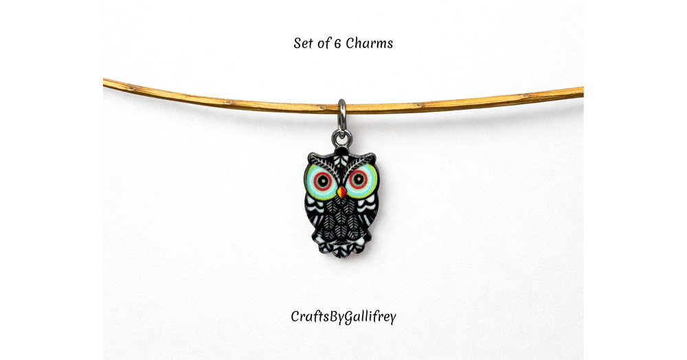 Owl Enamel Charms with Jump Rings: Jewelry & Craft Supplies - Set of 6